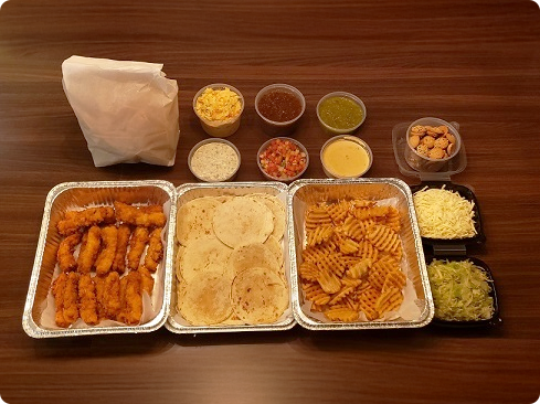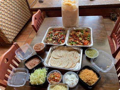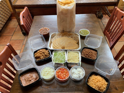 Feeding the whole family just got easier: we’re offering fajita bars, taco bars, and fried fish as part of our bulk take-out menu. Order multiple family meals to feed more, or save the leftovers! Call for more info or to place your order to go at any of our locations. We may not be open for dine-in, but we’ll always support tacos for all. Meals typically feed 4-5 people and include sides/additions depending on the dish, like: